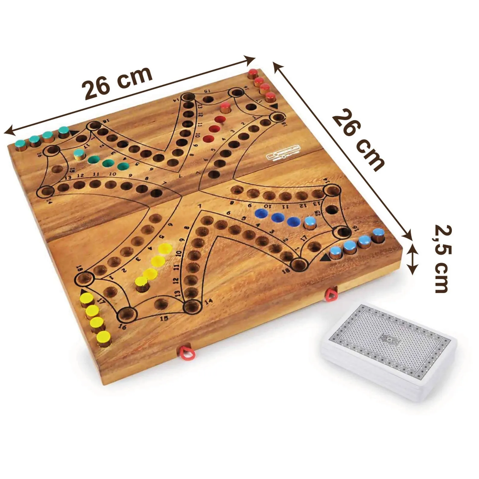 Family Track Board Game With Cards For Two To Four Players is a classic tabletop game that brings people around the same board for relaxed competition. The set includes a sturdy game board laid out with a looping track, playing pieces, and a deck of cards that controls movement. Simple symbols and clear spaces make it easy for new players to understand the flow of play after only a few turns.